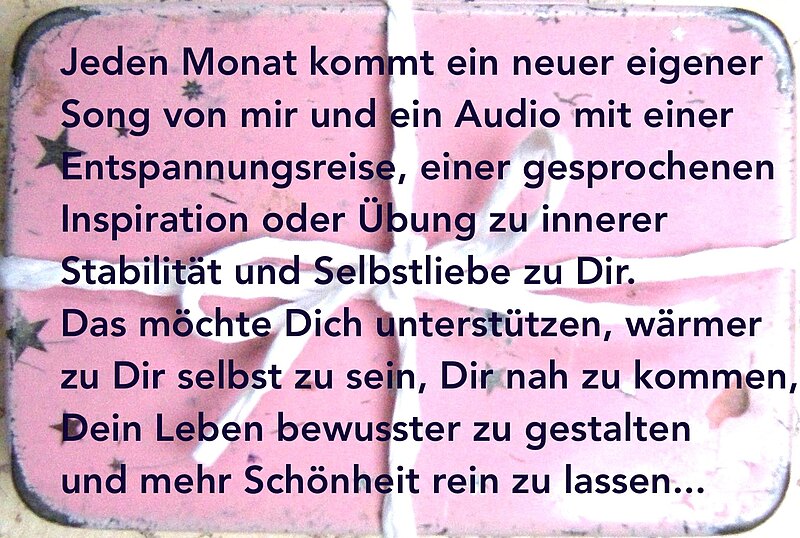Dein Paket oder das Päckchen für dich bzw. einen lieben Menschen kannst du über das Kontaktfeld bestellen - dann erhältst du die Überweisungsdaten. Und nach Eingang bei mir sende ich dir ein Willkommen. Dieses kannst du im Falle eines Geschenks ausdrucken ; ).
